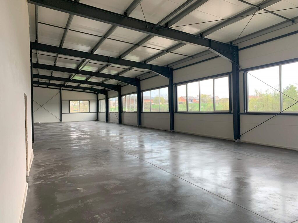 Gotowa hala produkcyjna wykonana z zaprojektowanej i wykonanej przez nasza firmę konstrukcji stalowej.